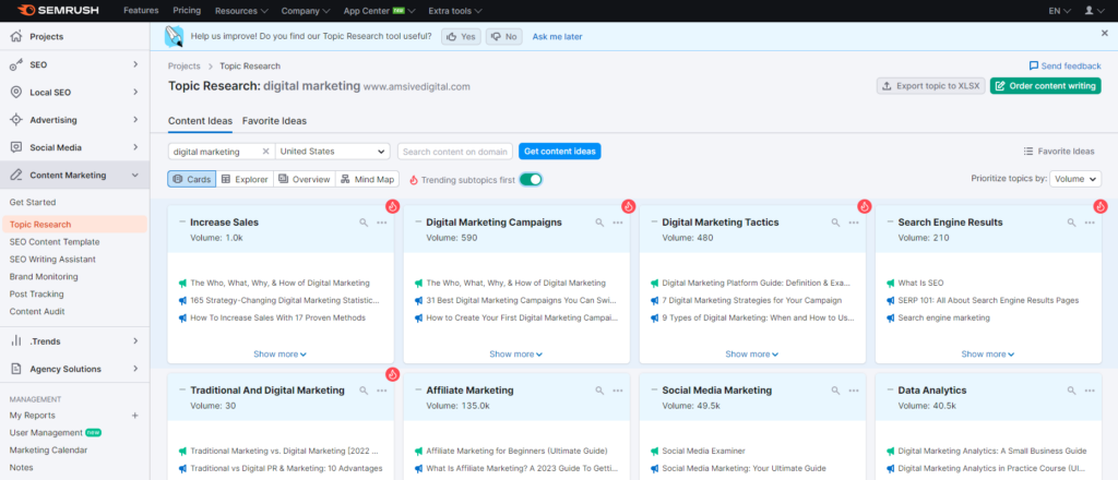 To avoid the mistake of lacking high-quality content, invest in content creation. Develop a content strategy that aligns with your target audience’s interests and needs. Create informative blog posts, buying guides, or tutorials that provide value to your readers. Use a conversational tone and engage your audience with storytelling techniques. Conduct research and provide accurate information. Again, Semrush is a great tool to do keyword research and find new content marketing ideas. Optimize your content with relevant keywords, but prioritize readability and user experience.