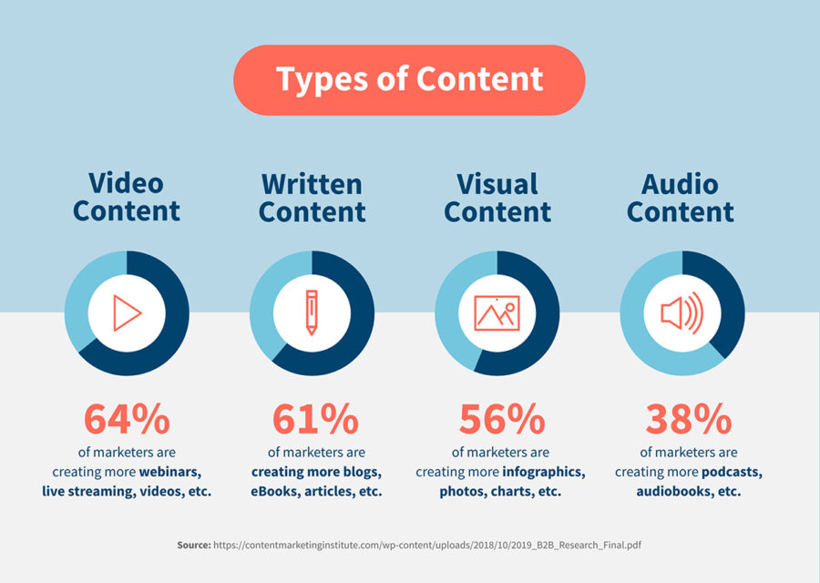 Once you know what you want to accomplish and who you need to target, the next step would be choosing what kind of content you want to put out there. The previous two steps will allow you to effectively plan out the best type of content that fits your goals and audience. Refer to the previous section to learn more about the different content types.